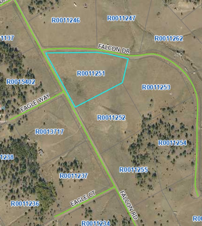 GPS NE corner: 38.907053, -105.691869 at Falcon Dr.
